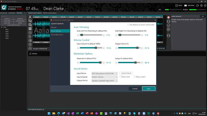 To create professional studio recording, once the recording has finished and is ready to be complete, we run a maximizer tool. This gives the recording a louder, more accurate sound. Default: 97%