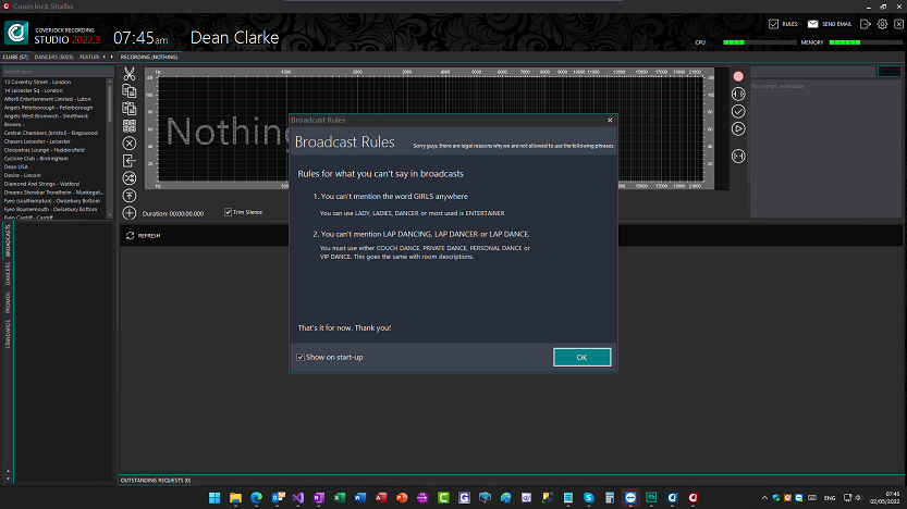 The strip club industry have certain rules around the world, especially in USA. Therefore the opening screen reminds you every time what you can and can'tr say.